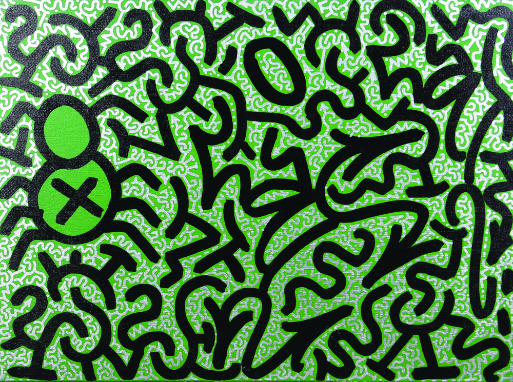 Little Angel LAII, One Green Bug, 2007, olio e smalti su tela, cm. 46x61,...