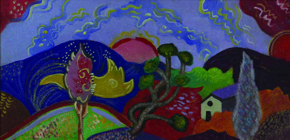Luca Alinari, Senza titolo, olio e pastelli su tela, cm. 20x40, firmato in basso a sinistra, certificato di autenticità dell'artista su fotografia