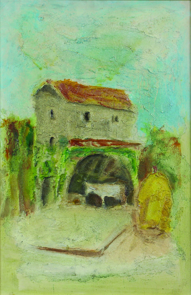 Giovanni Stradone, Casolare, 1965, olio e sabbia su cartone telato, cm....