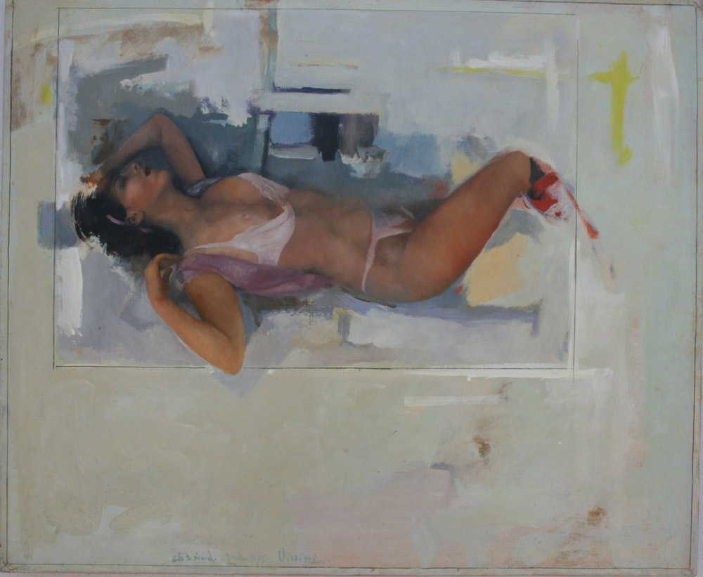 Lotto 104 | Andrea Vizzini, Composizione con nudo di donna, 1982, olio su tela, cm....