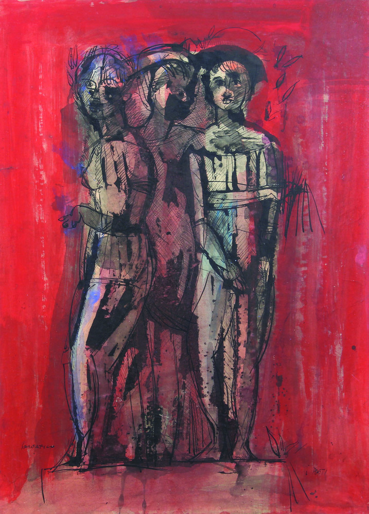 Leonardo Spreafico, I Poeti, tecnica mista su carta applicata su tela, cm....