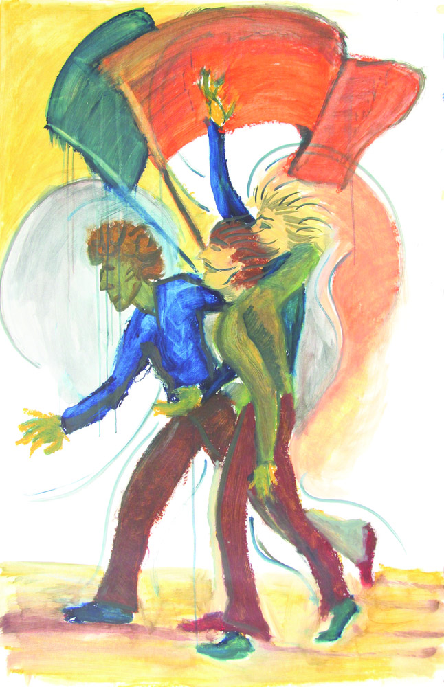 Anonimo, Senza titolo, tecnica mista su carta, cm. 150x104, l'opera presenta stropicciature e alcuni strappi al margine inferiore, senza cornice