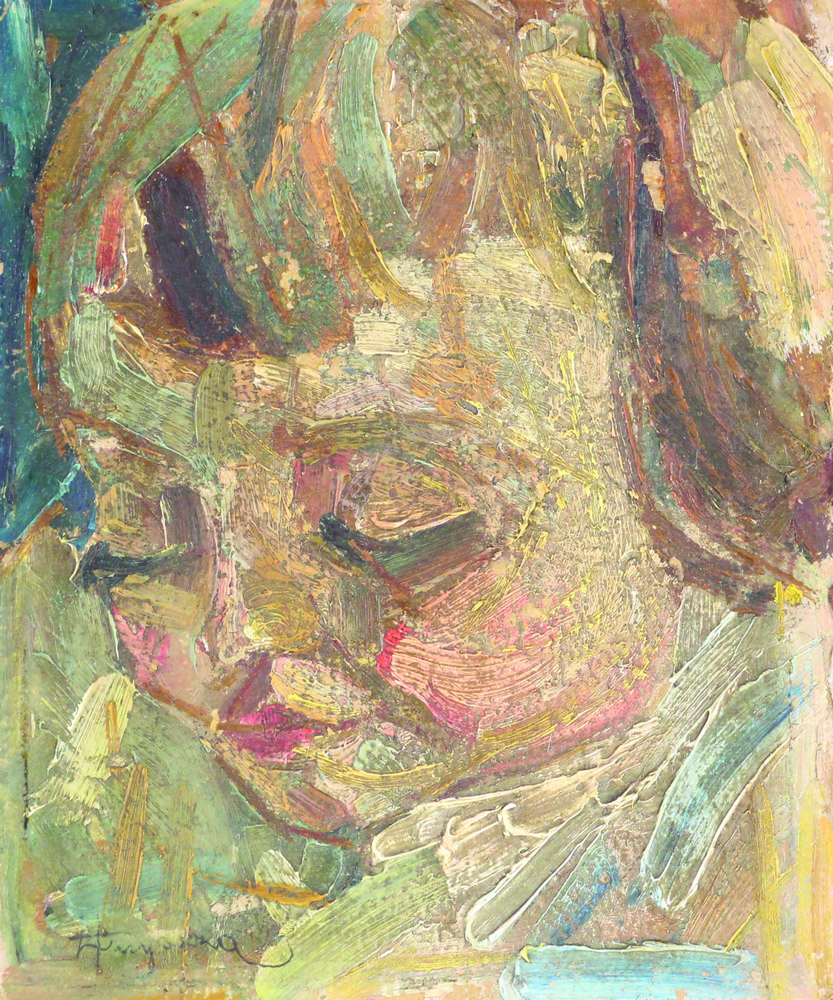 Ignoto, Volto, olio su cartoncino, cm. 18x15, firma non decifrata in basso a sinistra e al retro, senza cornici