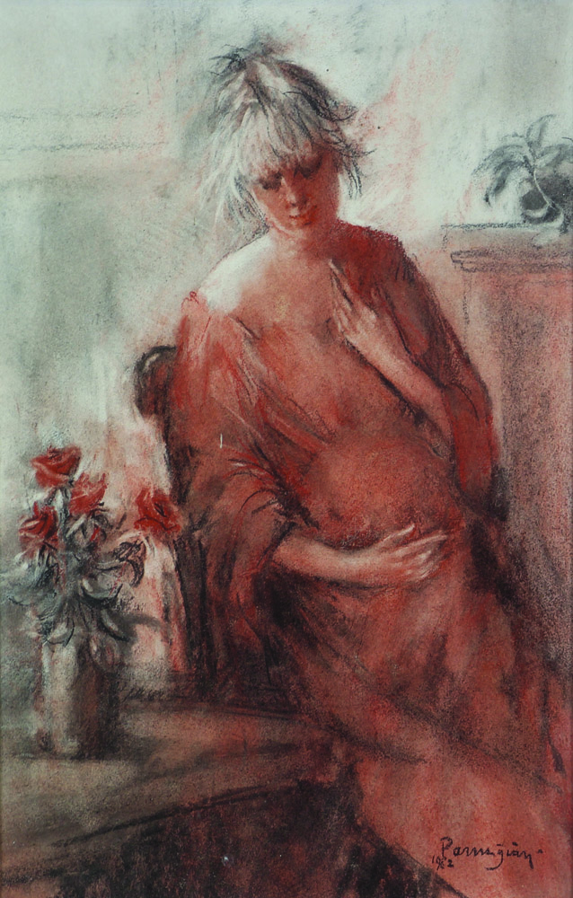 Aldo Parmigiani, L'Attesa, 1982, gessetti su cartoncino, cm. 40x25,5, firmato...