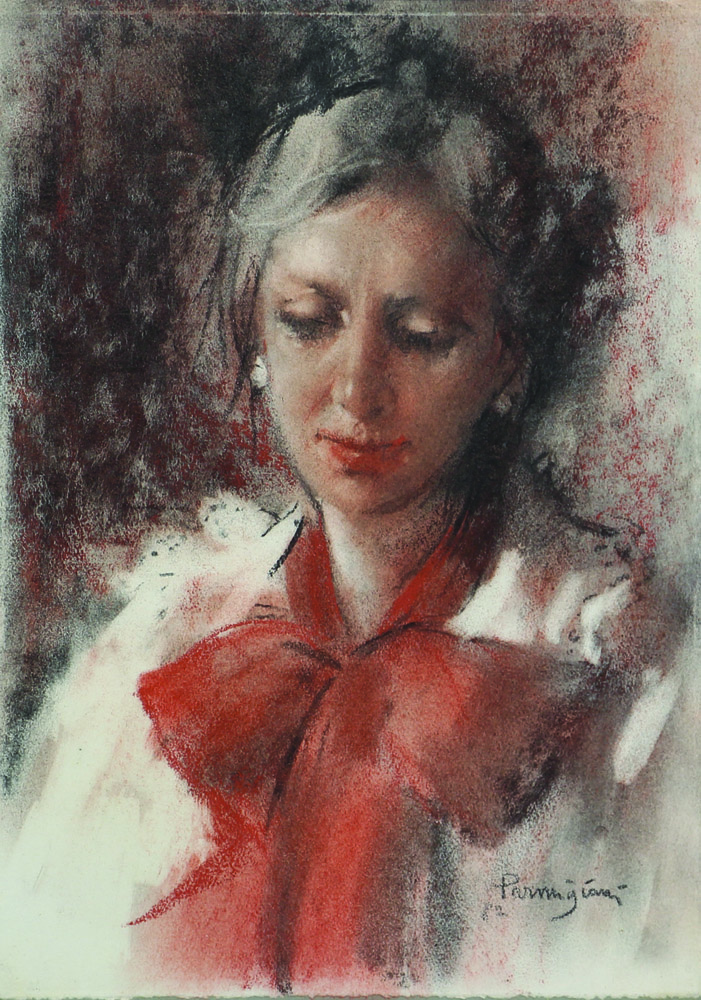 Aldo Parmigiani, Ritratto, 1982, gessetti su cartoncino, cm. 36x25,5, firmato e datato in basso a destra