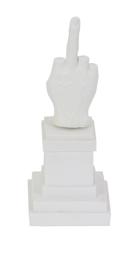 Maurizio Cattelan, L.O.V.E. Carillon, 2015, carillon in resina, cm. 27x10,5x10,5, riproduzione dell'opera monumentale di Maurizio Cattelan a Piazza Affari a Milano, prodotta da Saletti in 2000 esemplari in occasione della Milano Fashion Week 2015, l'opera è corredata di scatola originale