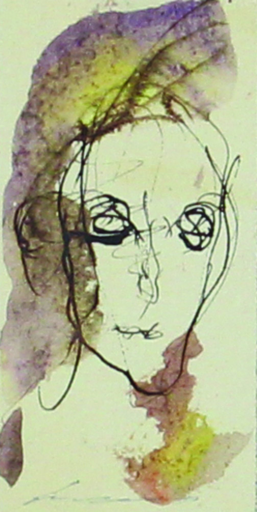 Ernesto Treccani, Volto, tecnica mista su carta, cm. 10x5, firmata in basso