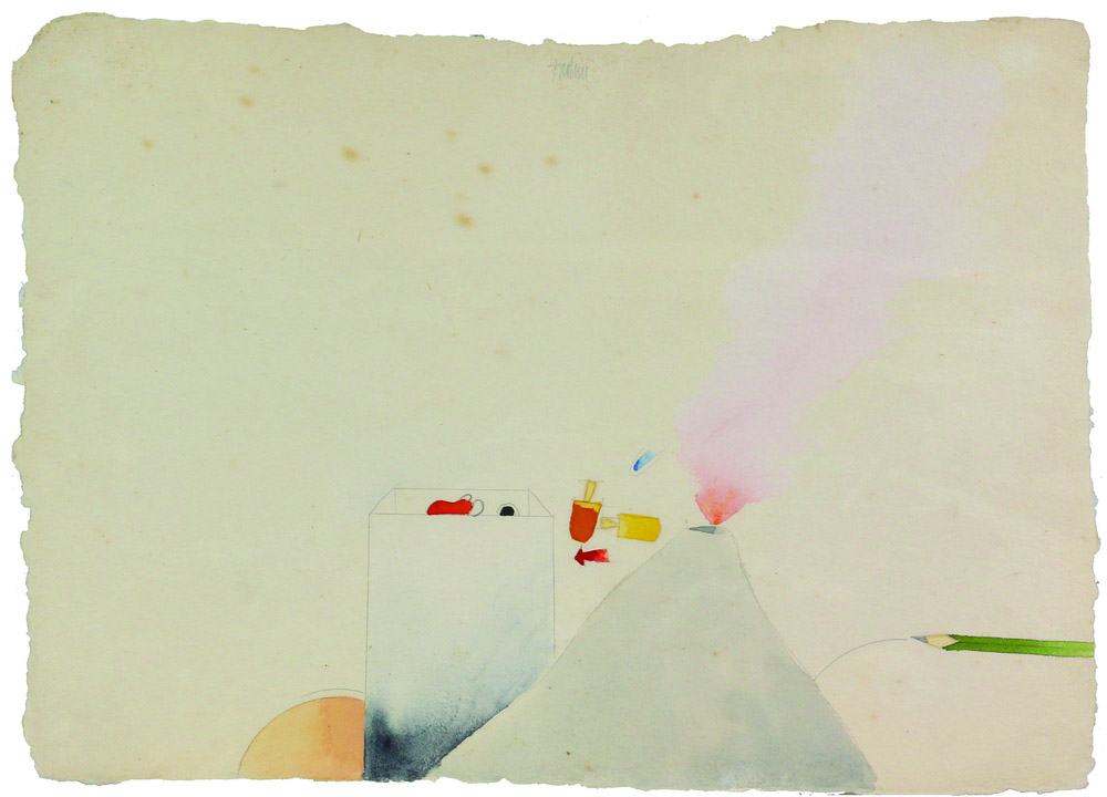 Emilio Tadini, Senza titolo, acquerello su carta a mano, cm. 37x52, firmato in alto al centro, l'opera presenta un disegno a matita al retro, sono presenti macchie di umidità