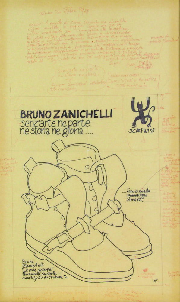 Bruno Zanichelli, Le Mie Scarpe, pennarello su carta, cm. 68x42, firmato in...