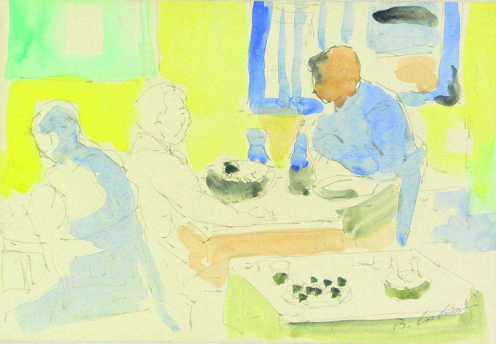 Ignoto, Senza titolo, acquerello su carta applicata su tela, cm. 20x29, firmata non decifrata in basso a destra