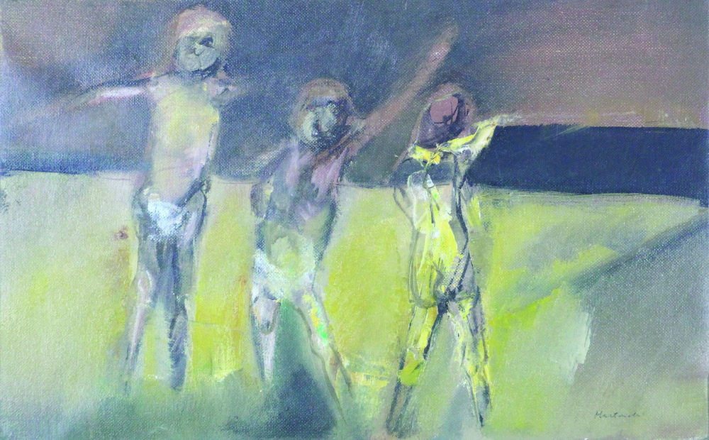 Giuseppe Martinelli, Ragazzi che giocano, olio su tela, cm. 25x40, firmato in basso a destra, firmato e intitolato al retro