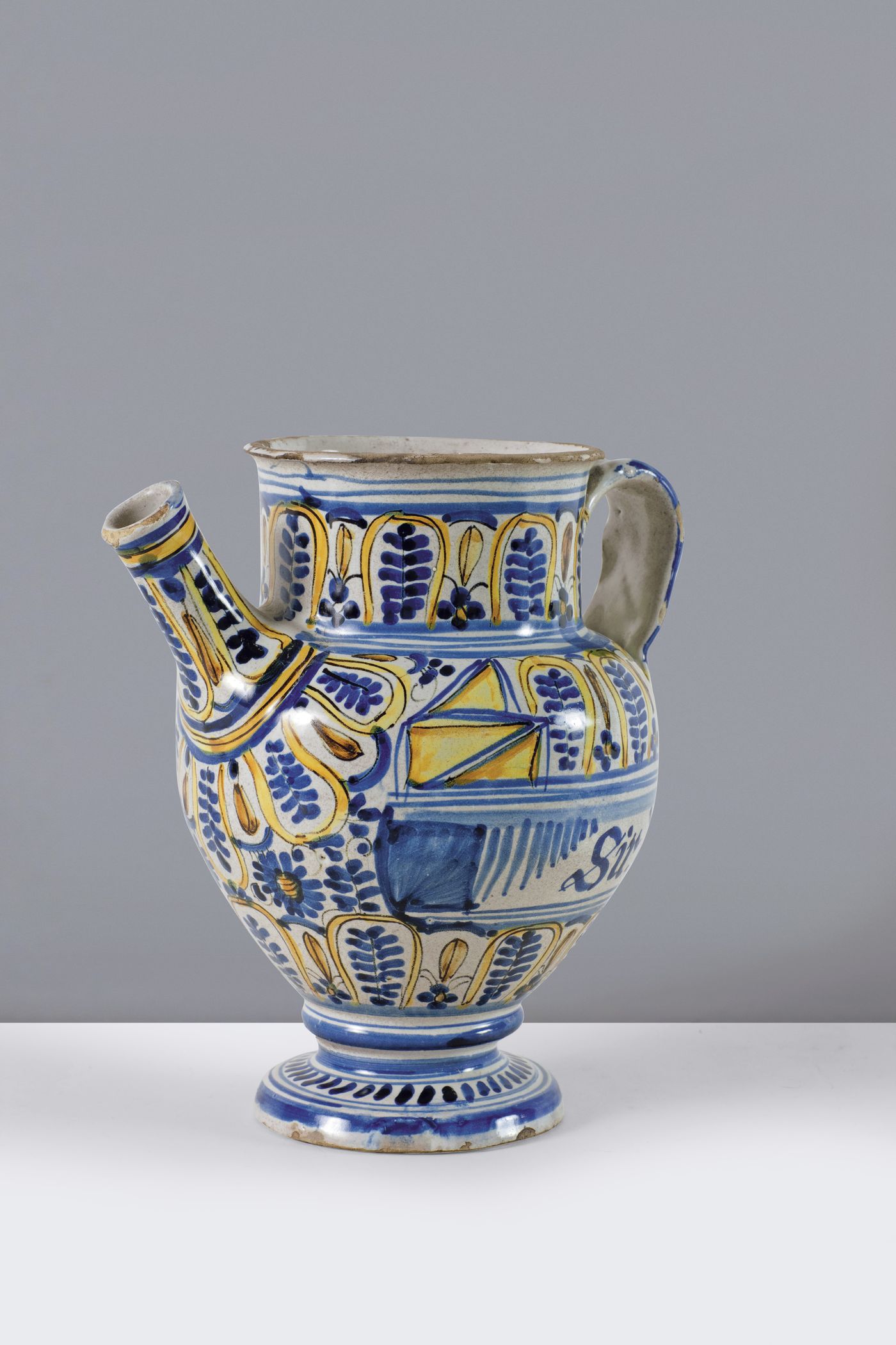 Lotto 367 | VASO DA FARMACIA - Versatoio in maiolica dipinta in policromia, Savona XVIII...