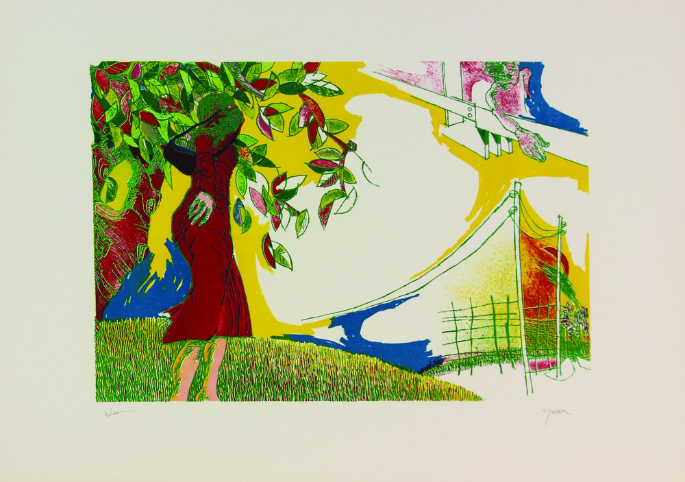 Antonietta Viganone, Figura femminile in un paesaggio, 1980, litografia su...