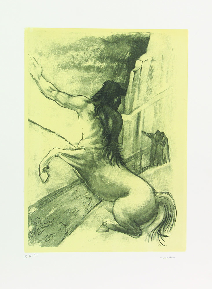 Francesco Messina, Senza titolo, incisione su carta, cm. 70x50 (lastra cm. 52x37), es. prova d'autore, firmata in basso a destra, timbro in filigrana in alto a destra, senza cornice