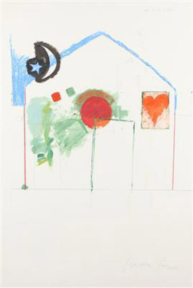 Giosetta Fioroni, Case a Ponte di Piave, tecnica mista su cartoncino, cm. 100x70, firmato in basso a destra, intitolato in alto a destra, certificato di autenticità dell'artista su fotografia