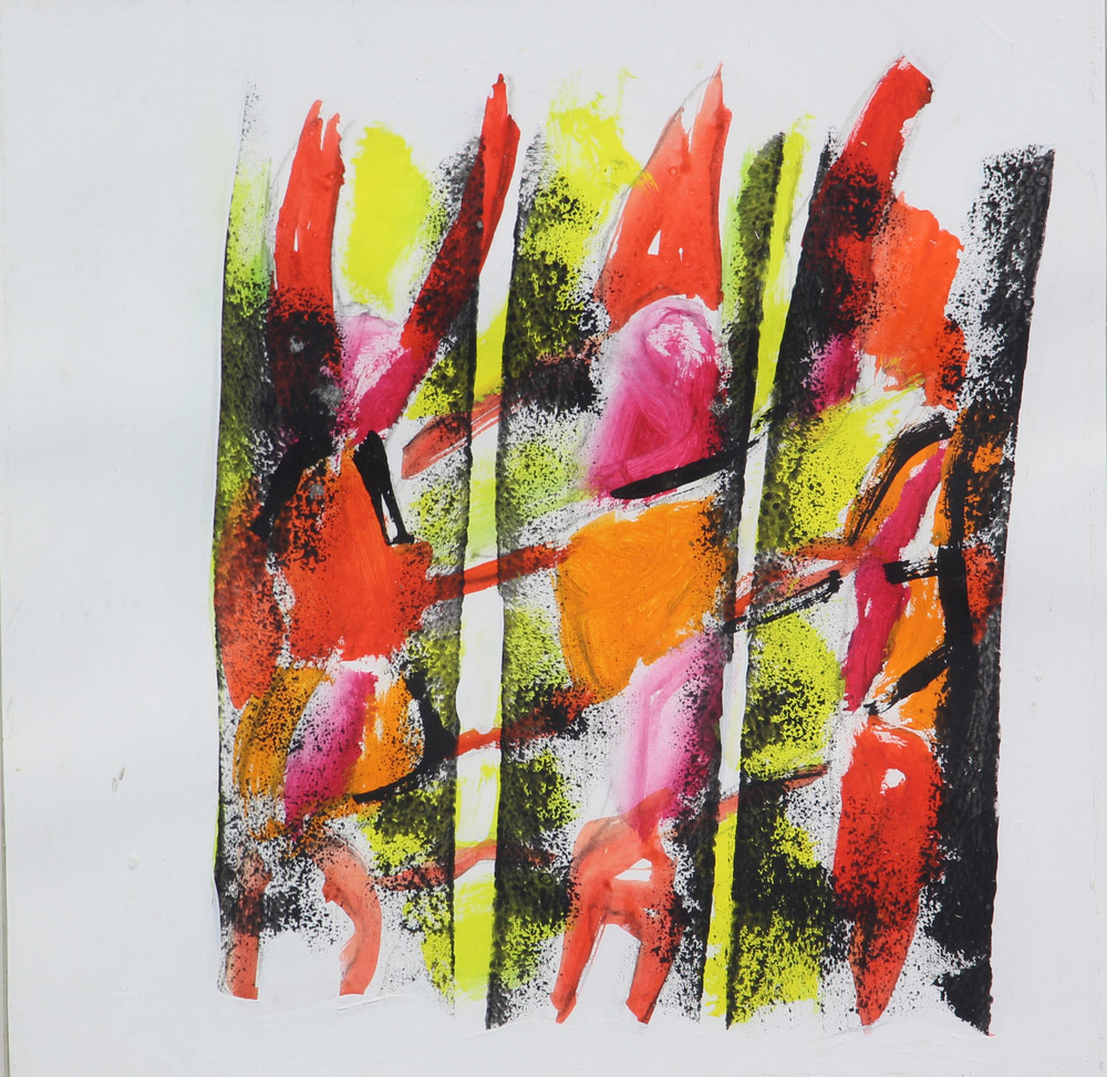 Ignazio Moncada, Astratto, 1996/1997, tecnica mista su cartoncino, cm. 20x20, etichetta per autenticità e timbri della Galleria Transit di Bergamo al retro