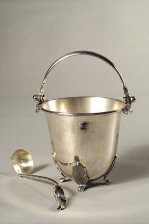 Secchiello da ghiaccio in silver plate, fusto liscio piedi a foglie. cm 13