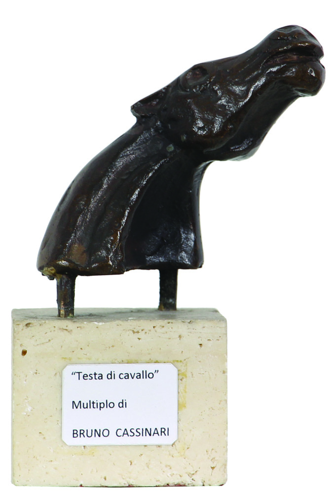 Bruno Cassinari, Testa di Cavallo, scultura in bronzo con base in marmo, cm....