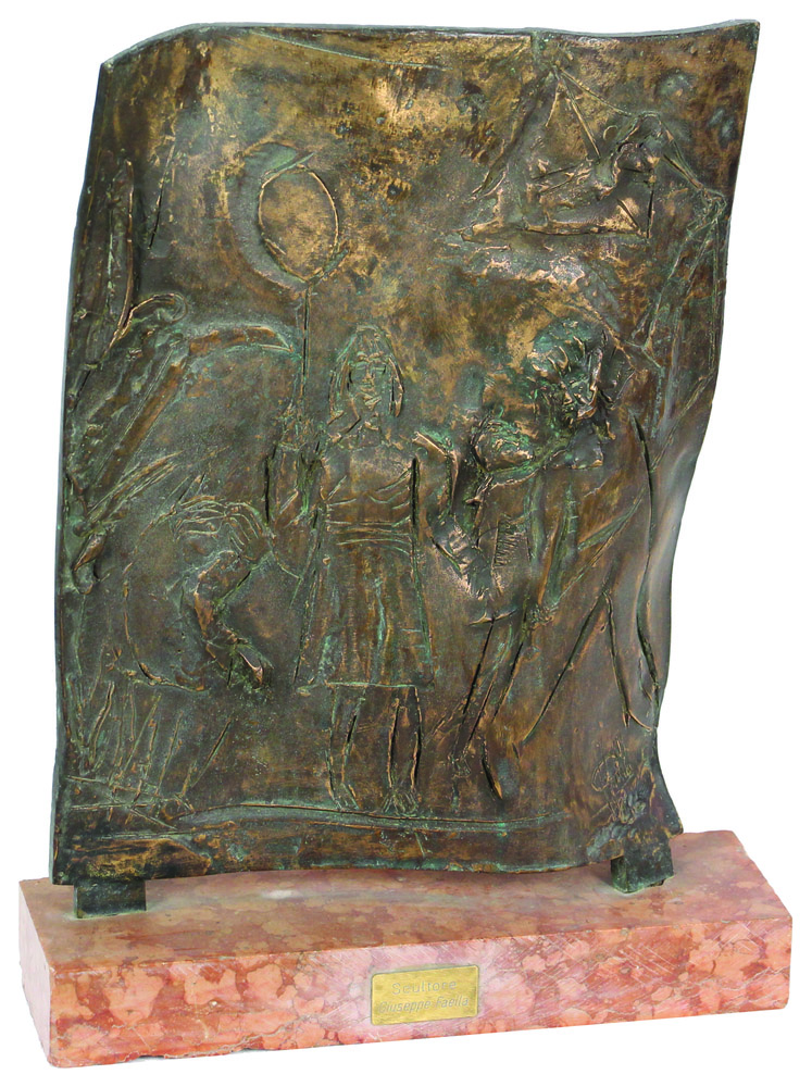 Giuseppe Faella, Figure nel Parco, scultura in bronzo, fusione a cera persa, cm. 41x31, firma incisa in basso a destra, certificato di autenticità dell'artista su fotografia