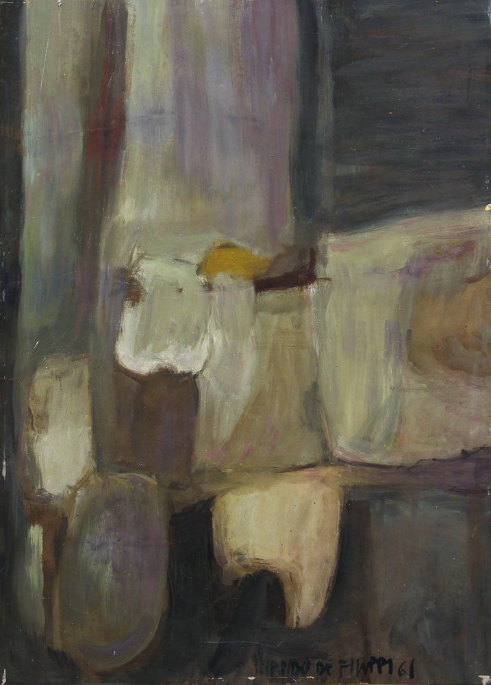 Ferdinando De Filippi, Senza titolo, 1961, olio su tavola, cm. 70x50, firmato e datato in basso a destra, senza cornice