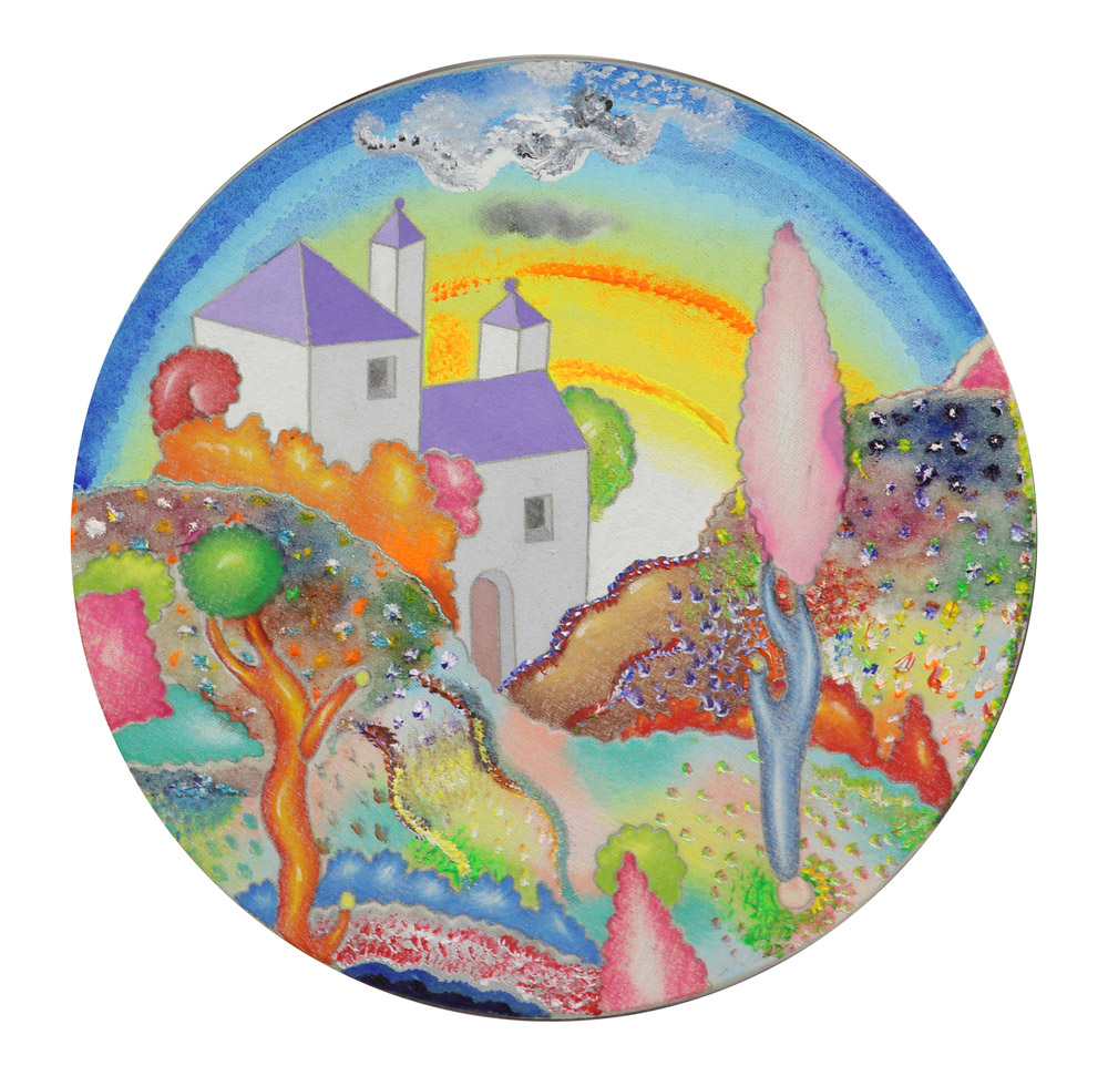 Luca Alinari, Senza titolo, tecnica mista su tela applicata su tavola, diam....