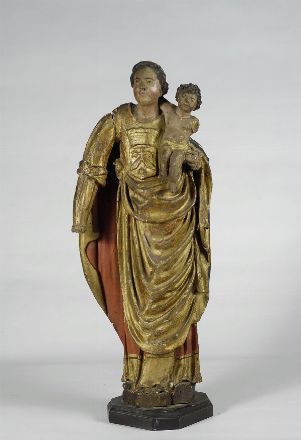 Madonna con bambino in legno intagliato e dipinto, Francia, XVIII sec, cm. h. 66