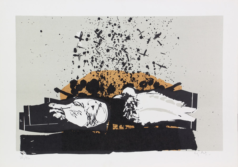 Giorgio Celiberti, Colombe, 1970, litografia su carta, cm. 50x70, es. 26/120,...