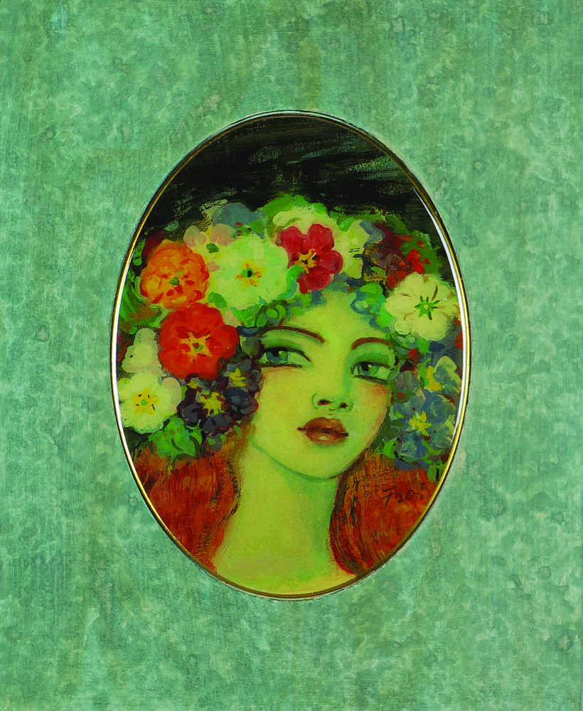 Felicita Frai, Marianna, litografia ovale sotto smalto in cornice, cm. 29x24, es. 736/1000, firmata in basso a destra, certificato di autenticità della Spirale Arte di Milano