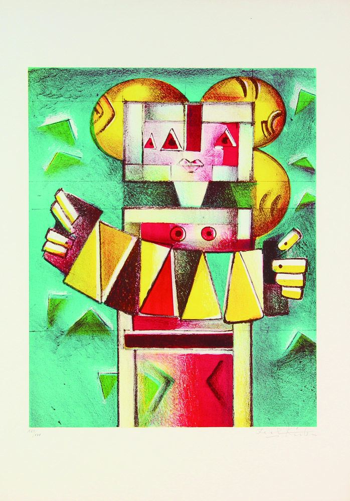 Ibrahim Kodra, Musicanti, (1980), litografia su carta, cm. 70x50, es....