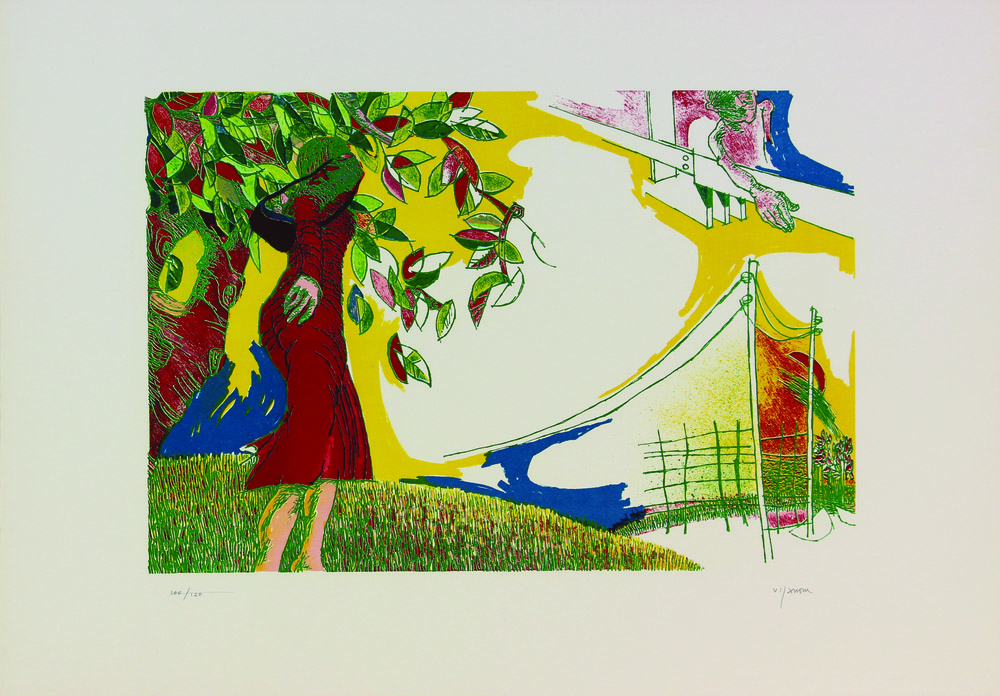 Antonietta Viganone, Figura femminile in un paesaggio, 1980, litografia su...