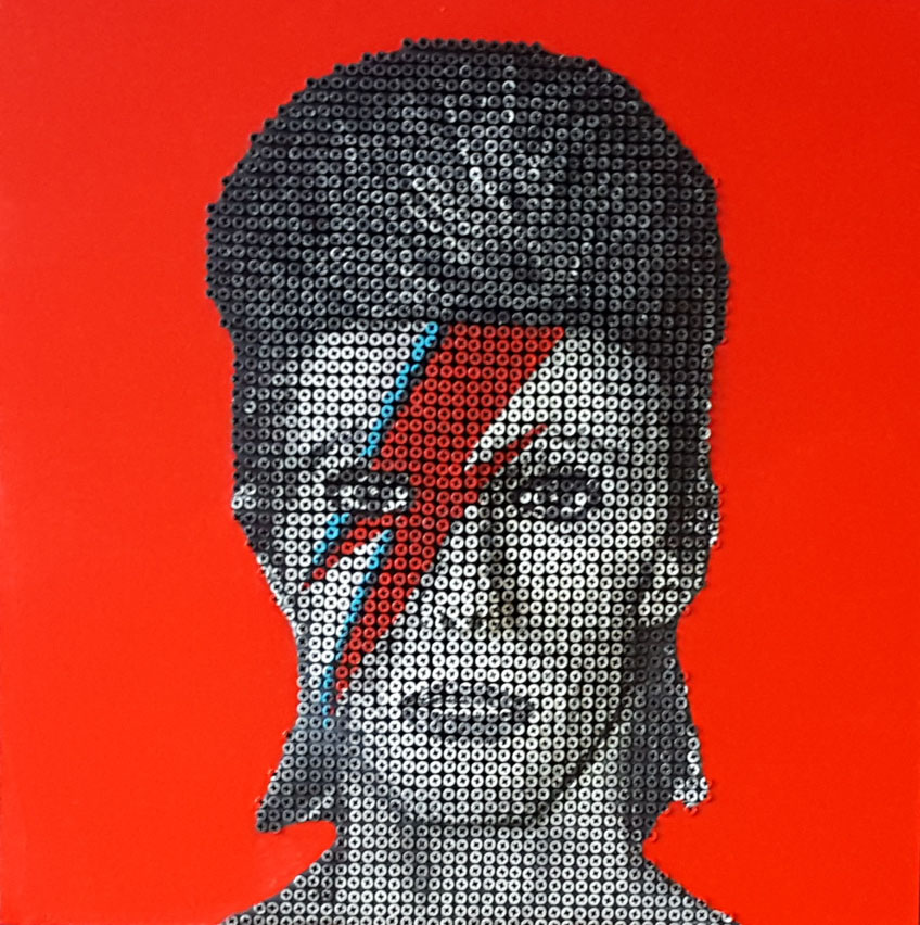 Drill Monkeys Borgomanero 1983 David Bowie 3D 2016 Acrilico su viti 60x60 Certificato di autenticità