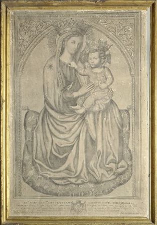 Madonna con bambino antica stampa montata su tela cm. 69,5x56, cornice in...