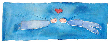 Leila Mariani San Donato Milanese 1970 Flying love 2001 pasta acrilica su cartone 19x54 Certificato di autenticità