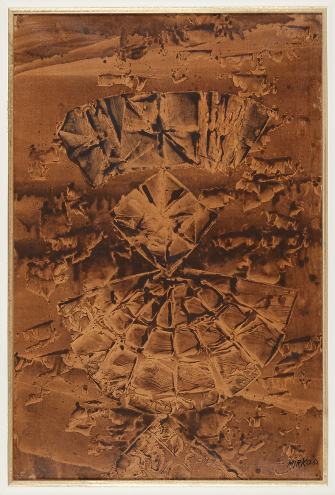 MIRKO BASALDELLA (Udine 1910 - Cambrige Massachusetts 1969) Senza titolo, 1962 Olio su tela, cm. 75 x 50 Firma e data in basso a destra Timbro a retro PROVENIENZA Arte Contemporanea Antonio Toro, Udine