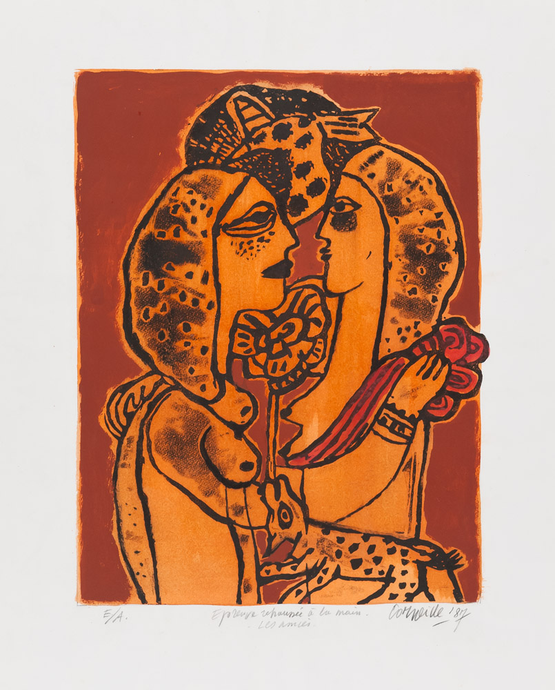 CORNEILLE (Lieg 1922- Auvers-sur-Oise 2010) Les amies, 1987 Litografia a colori, ex. E.A Misure della lastra, cm. 42 x 32 Firma e data in basso a destra