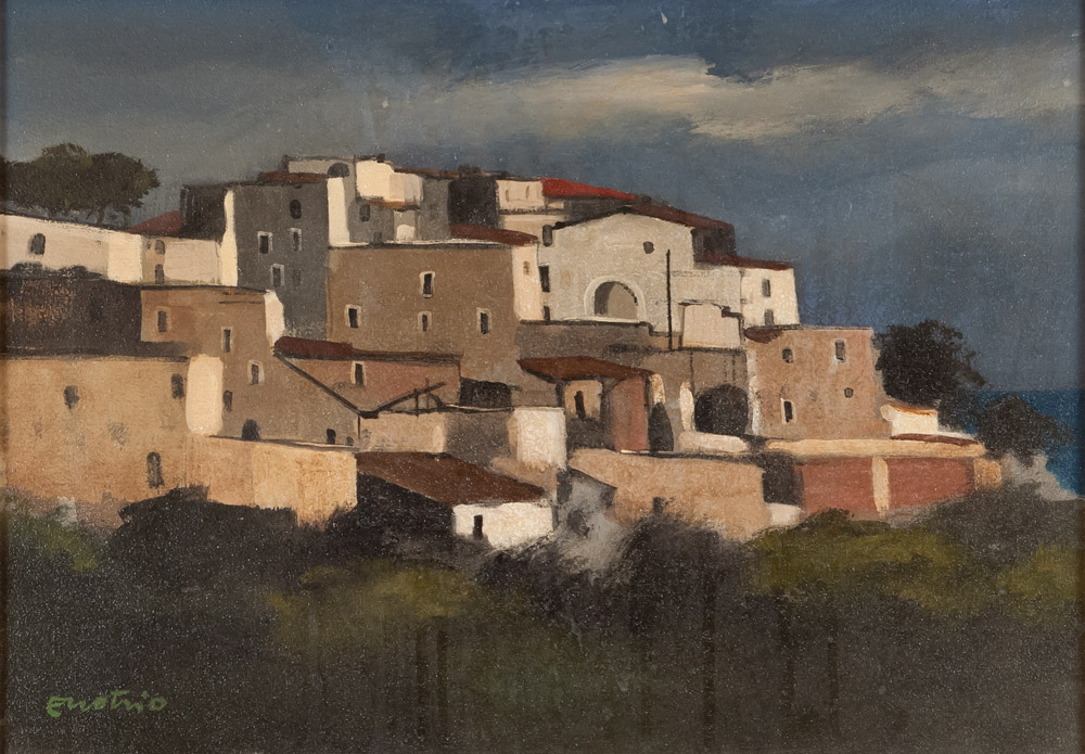 ENOTRIO (Buenos Aires 1920 - Pizzo 1989) Paesaggio sul Tirreno Olio su tela, cm. 35 x 50 Firma in basso a sinistra