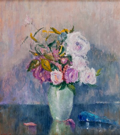 DEIVA DE ANGELIS (Gubbio 1885 - Roma 1925) Vaso di fiori Olio su tavola, cm. 47 x 41 Firma in basso a sinistra