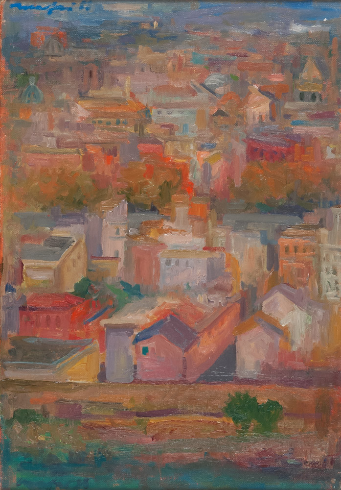 MARIO MAFAI (Roma 1902 - 1965) Tetti, 1953 Olio su tela, cm. 50 x 35,2 Firma e data in alto a sinistra Firma e data a retro Etichetta al retro PROVENIENZA Già Collezione Franco Evangelisti Collezione privata, Roma ESPOSIZIONI Mostra retrospettiva di Mario Mafai, Palazzo Barberini, Roma gennaio - marzo 1979