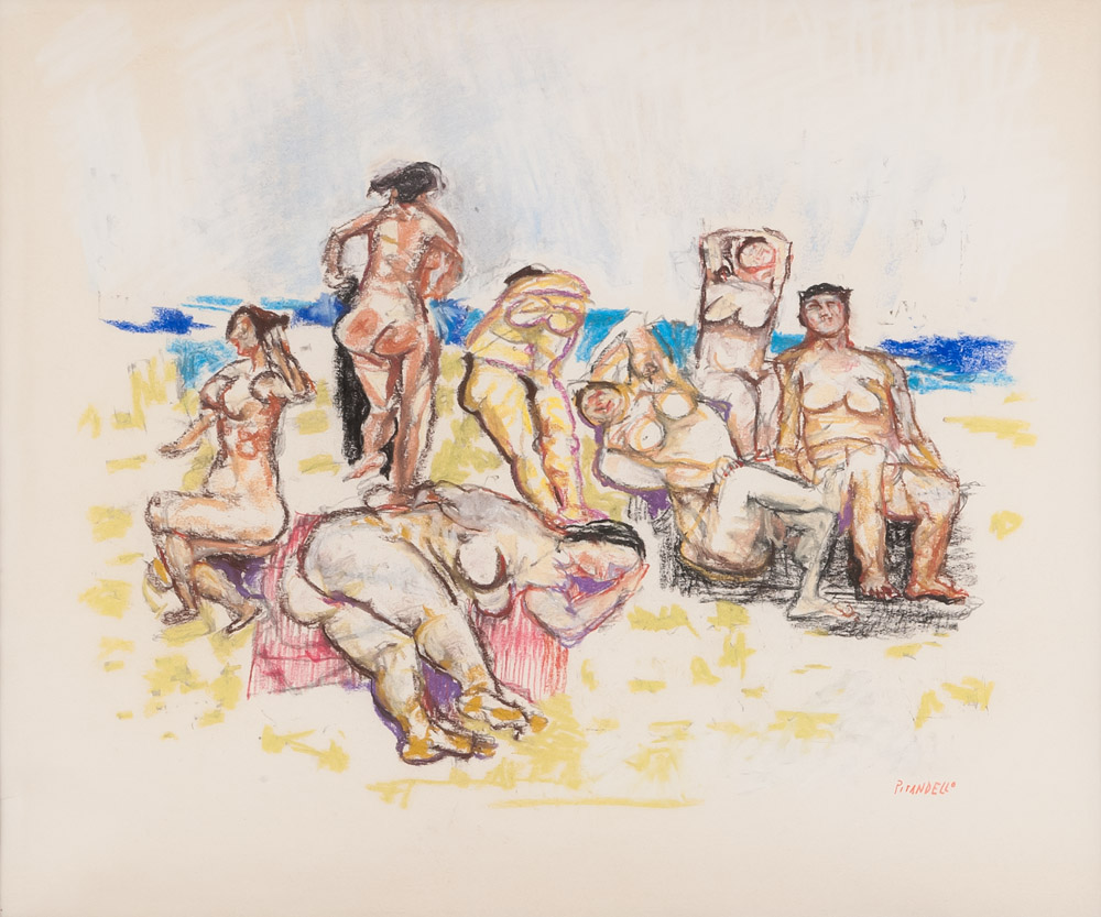 FAUSTO PIRANDELLO (Roma 1899 - 1975) Bagnanti Tecnica mista su carta, cm. 50 x 60 Firma in basso a destra Timbro al retro PROVENIENZA: Centro d'Arte La Barcaccia, Roma