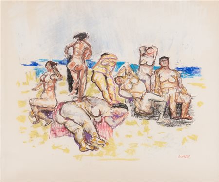FAUSTO PIRANDELLO (Roma 1899 - 1975) Bagnanti Tecnica mista su carta, cm. 50...