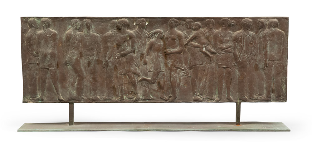 ALESSIO PATERNESI (Civita Castellana 1937) Figure Bassorilievo in bronzo, cm. 22 x 69 Firma in basso a destra Supporto a piedistallo in bronzo