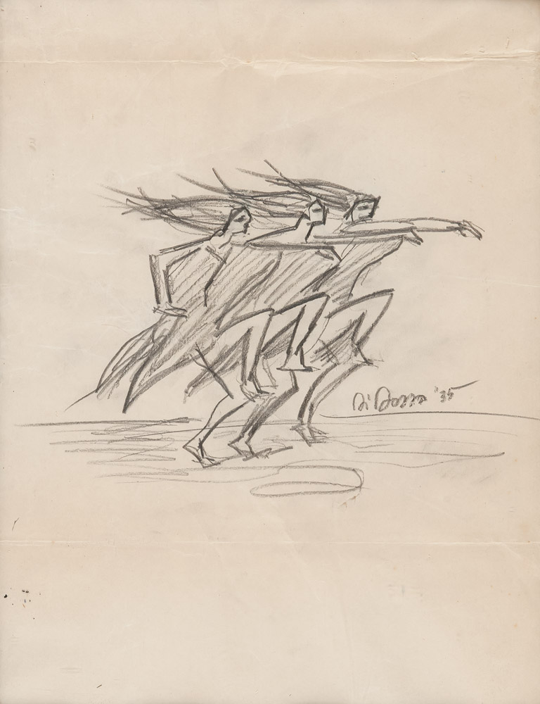 PITTORE ITALIANO XX SECOLO Figure in movimento, 1935 Matita su carta, cm. 40 x 30 Firmato 'Di Dosso' in basso a destra