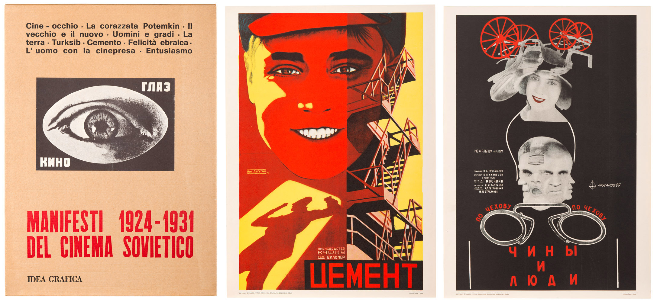 MANIFESTI DEL CINEMA SOVIETICO Manifesti 1924-1931 del cinema sovietico Dieci ristampe a cura di 'Idea Grafica, Roma', 1968 Misure dei fogli, cm. 70 x 50 In cartella