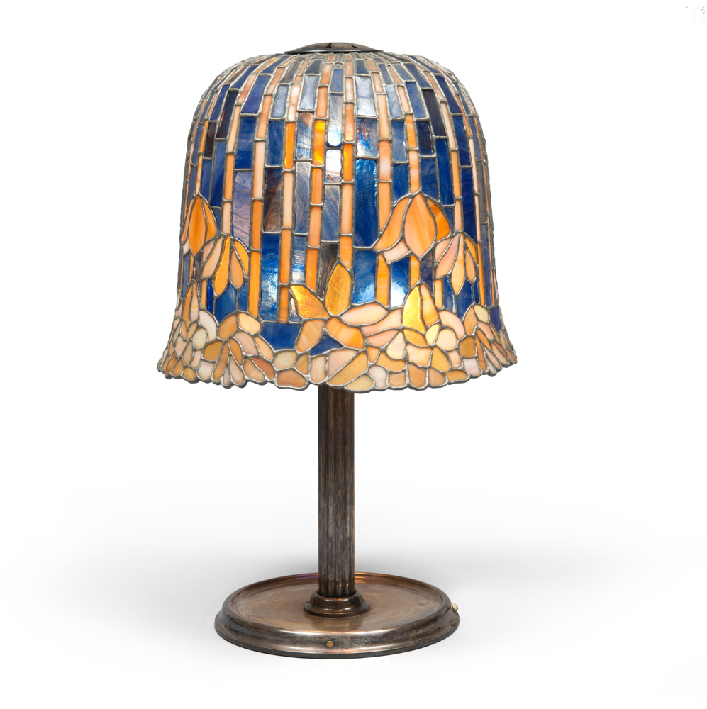 LAMPADA DA TAVOLO IN STILE lampada in smalti e calcedonio con fusto e base in argento. Argentiere Vavassori, Milano Titolo 800\1000 Misure cm. 57 x 35