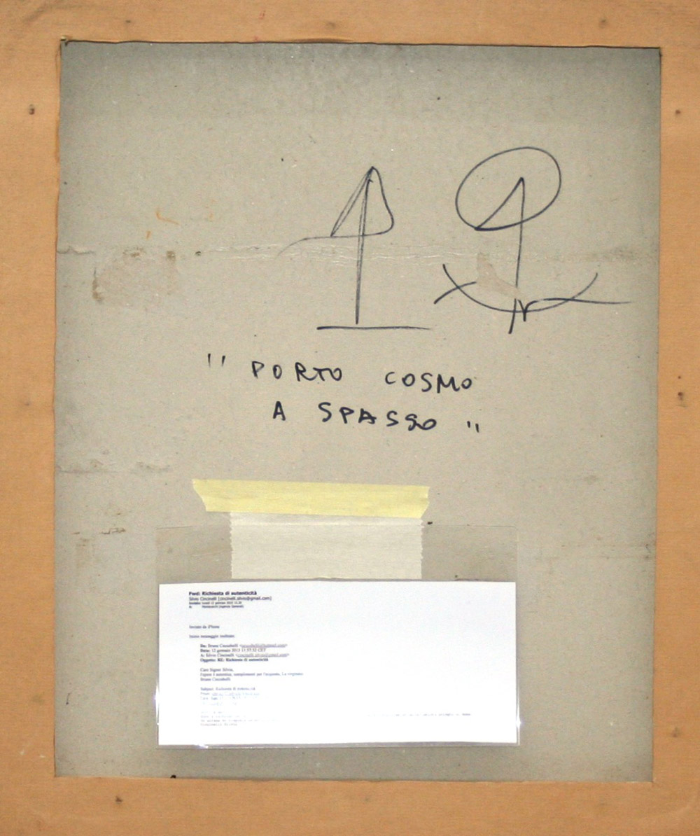 Bruno Ceccobelli 1952, Montecastello di Vibio (Pg) - [Italia] Porto Cosmo a spasso mista su tavola cartonata 52,5x43,5 cm opera con cornice certificato di autenticità firmato dall’artista