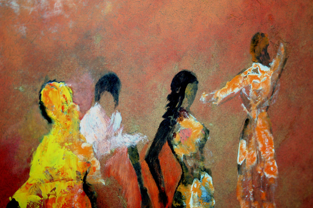 Jose Guevara 1926, Huelva - 2010, Huelva [Spagna] Bailarinas olio, combustione del pigmento su faesite 41x33 cm 2005 firma dell’artista in basso a sinistra e sul retro; opera con cornice certificato di provenienza garantita Picenum