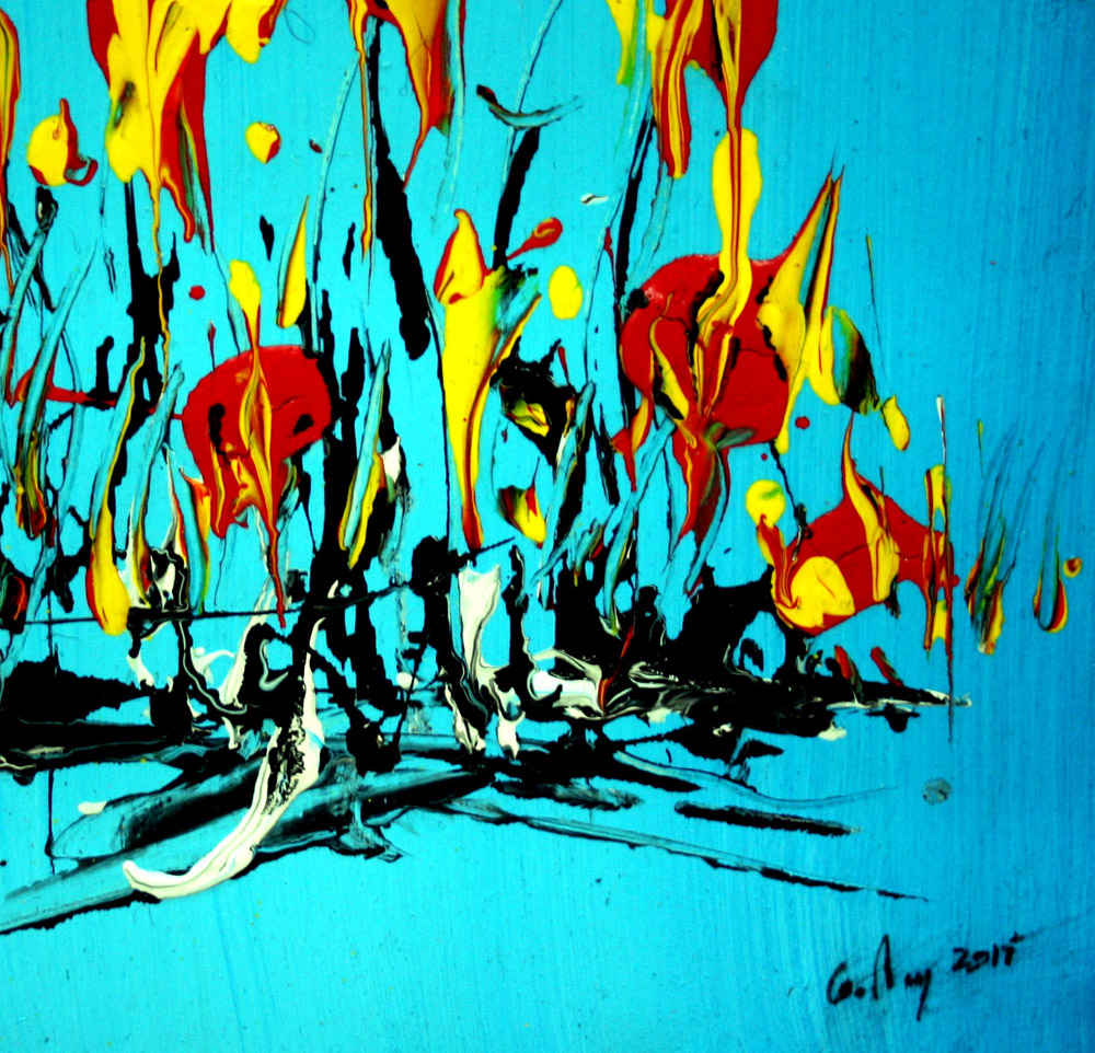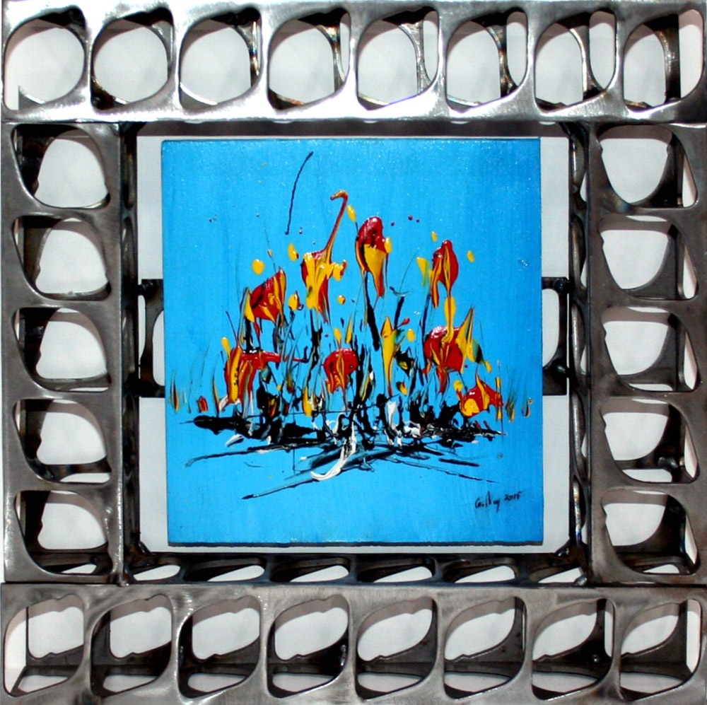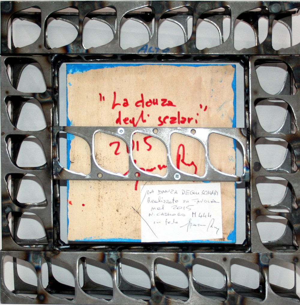Graziano Rey 1953, Torino (To) - [Italia] La danza degli scalari smalti su tavola e metallo 35x35x7 cm 2014 firma dell’artista in basso a destra e sul retro; con cornice in metallo traforato certificato di provenienza garantita Picenum