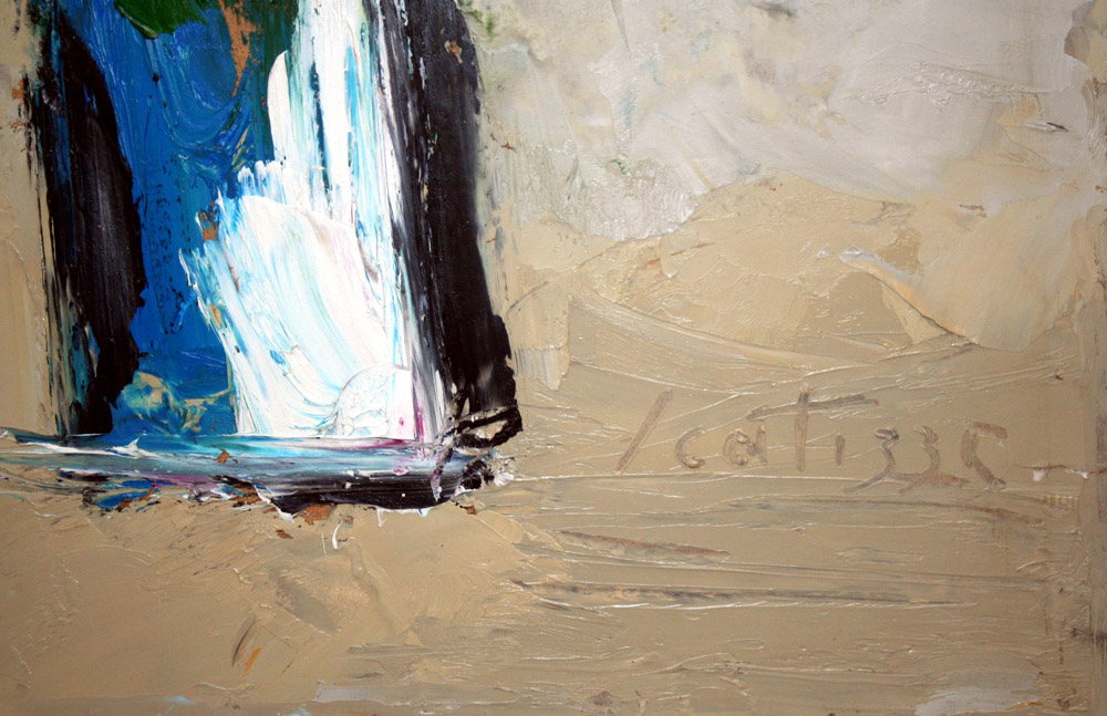 Sergio Scatizzi 1918, Gragnano (Lu) - 2009, Firenze (Fi) - [Italia] Vaso con fiori di campo olio su tela 70x50 cm 2000 firma dell’artista in basso a destra e sul retro; opera con cornice certificato di provenienza garantita Picenum