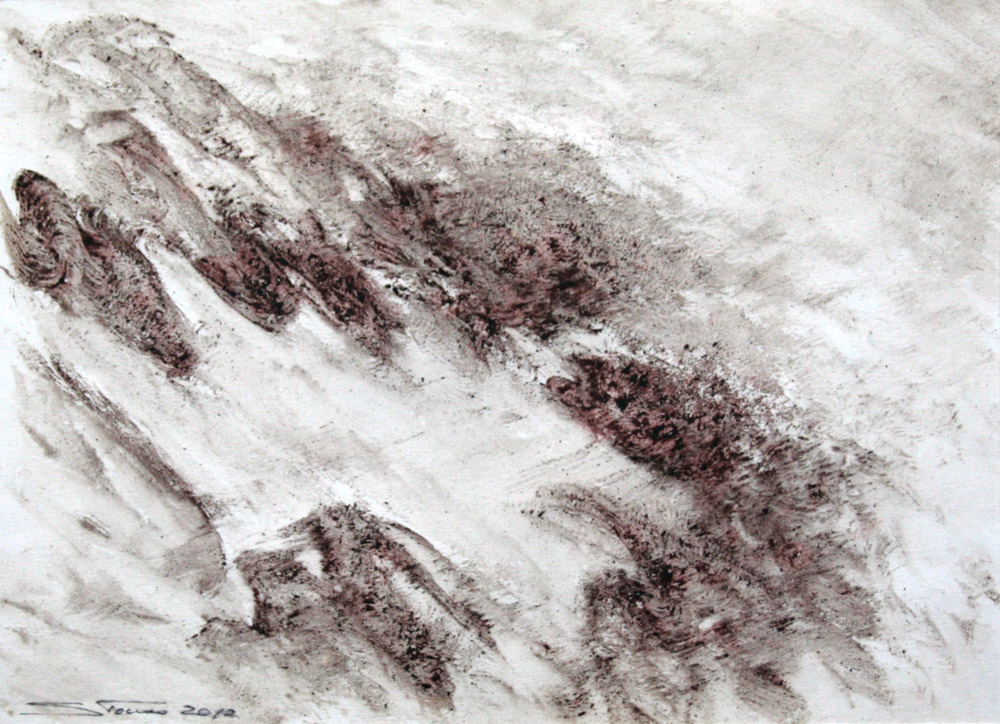 Gianna Stomeo 1959, Martano (Le) - [Italia] N. 3 olive su cartoncino telato 36x49 cm 2012 firma dell'artista in basso a sinistra e sul retro; opera con cornice certificato di autenticità firmato dall’artista