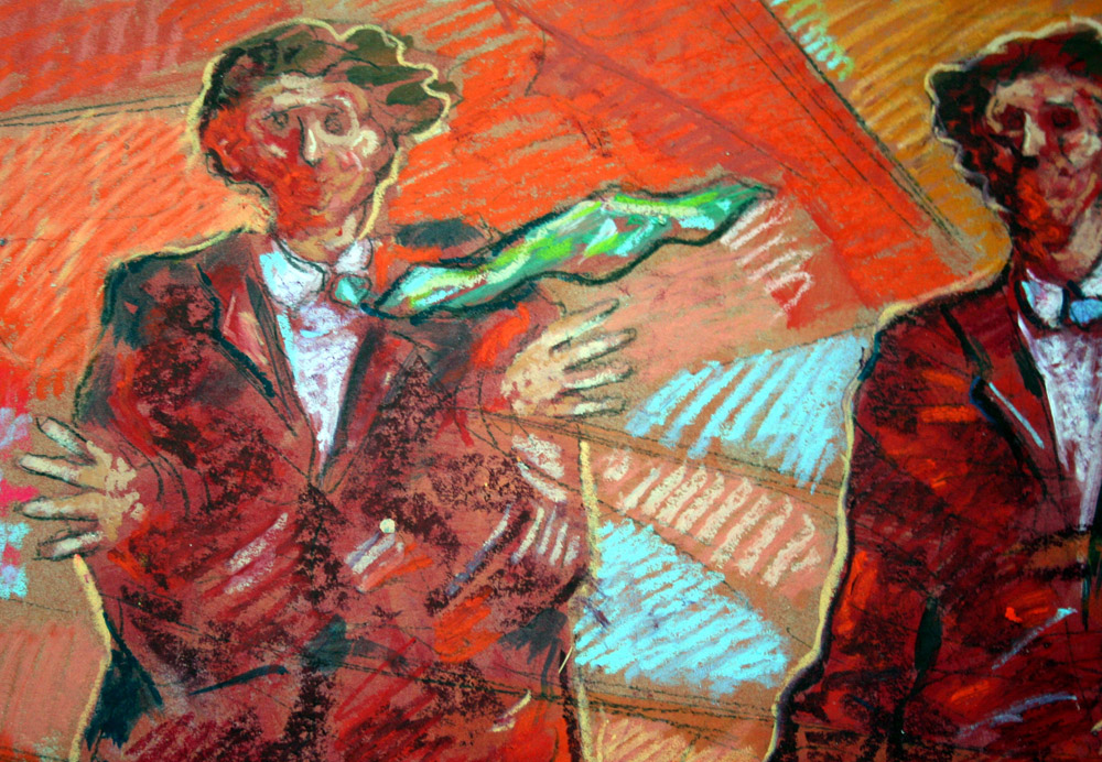 Giampaolo Talani 1955, San Vincenzo (Li) - [Italia] Partenza di due ombre rosse mista su cartone 40x50 cm 2015 firma dell'artista in basso a destra e sul retro; opera con cornice certificato di autenticità firmato dall’artista